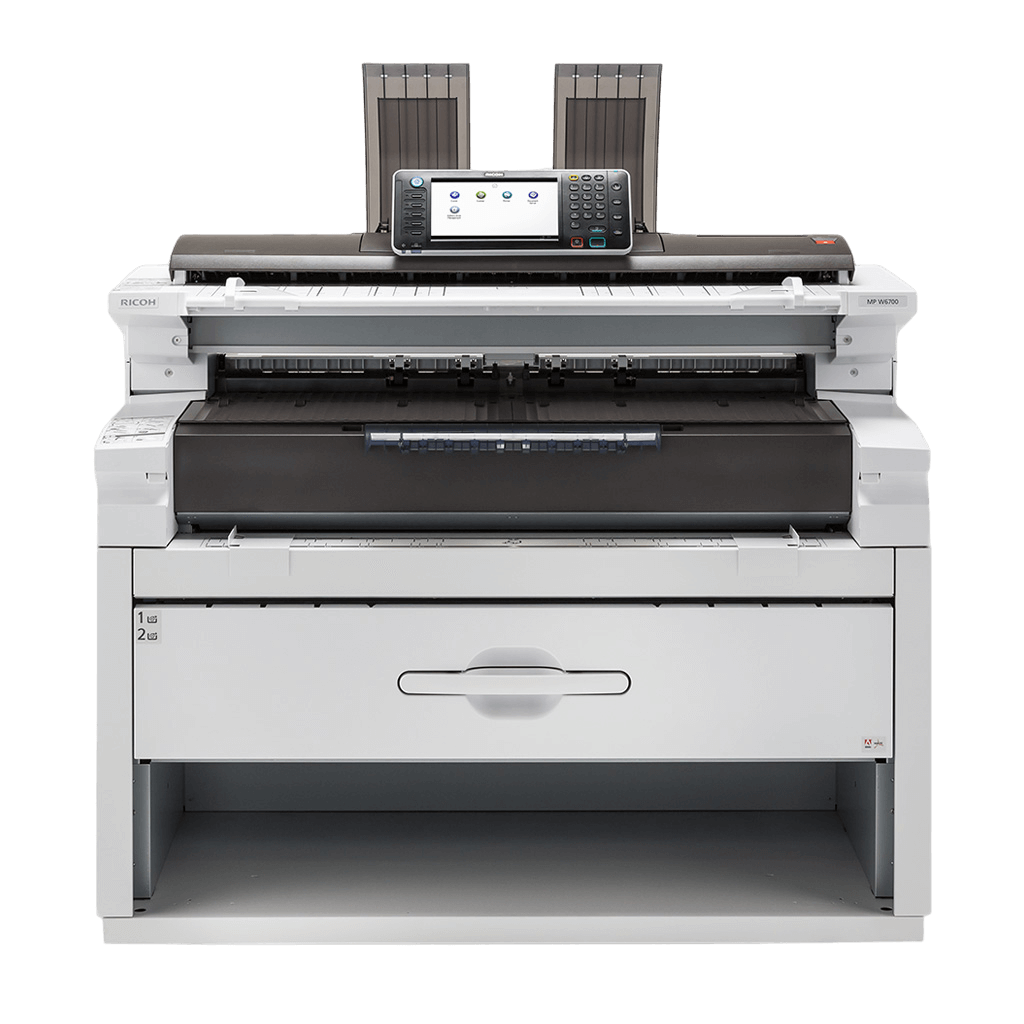 With internal paper ejection mechanism, the RICOH MP W6700 SP stacks papers to be printed and copied on a level. You can easily take them and work efficiently in front of the machine even in small spaces. In addition, You can choose between an optional Multi-Stacker or Double-Stacker, the RICOH MP W6700SP also stacks the large size drawings, which improves handleability of documents.