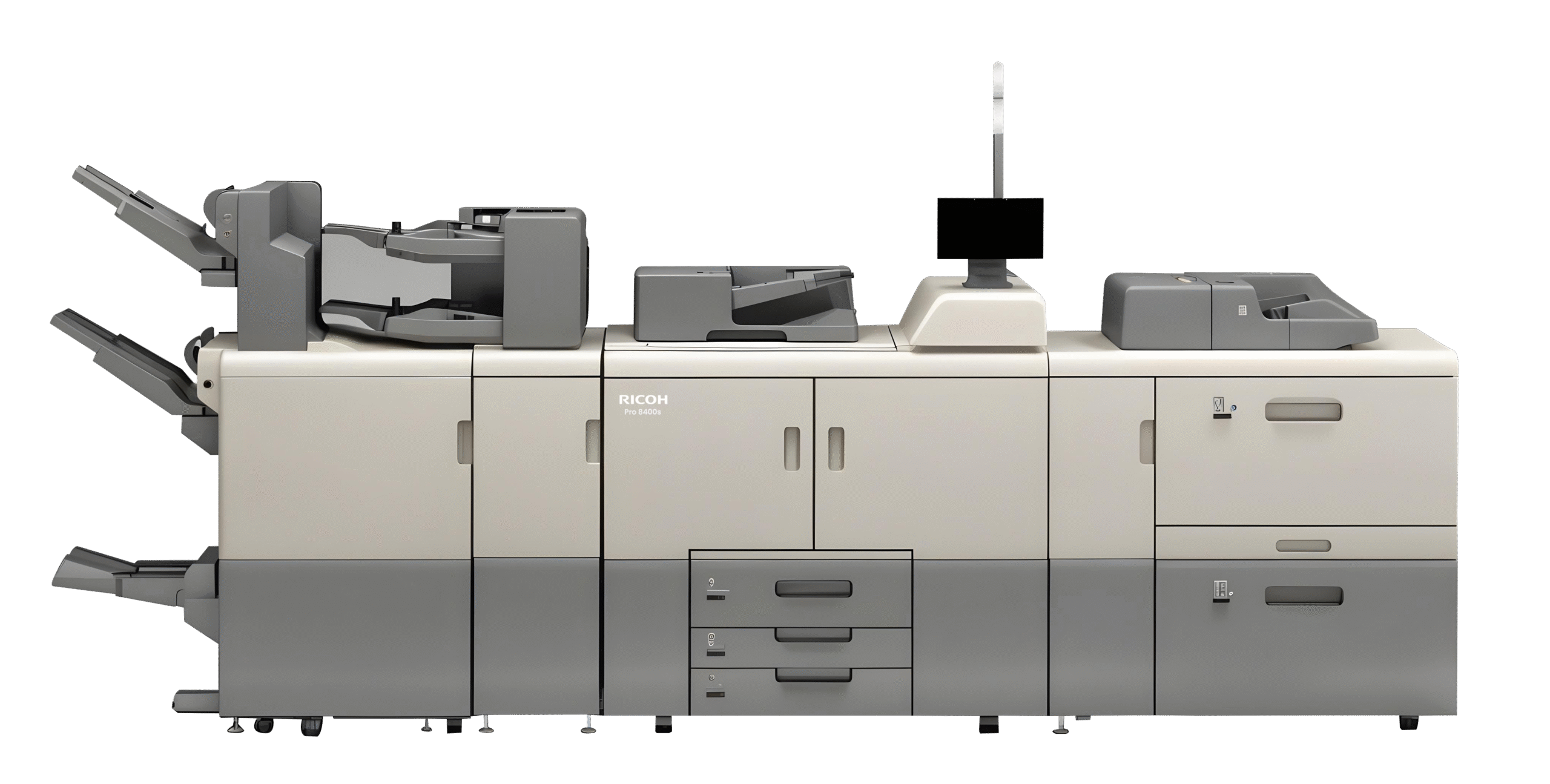The Ricoh Pro 8400S produces sharp and clear prints with a 2,400 x 4,800 dpi resolution. It supports various paper types.